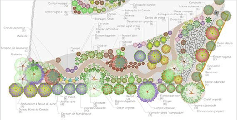 Drzewa orzechowe, drzewa i krzewy owocowe, warzywa wieloletnie lub tropikalne, zioła, kwiaty jadalne i rośliny lecznicze; każdy z nich ma swoje miejsce w jadalnej architekturze krajobrazu. Z roku na rok są w stanie produkować obfite warzywa i owoce przy niewielkich nakładach konserwacyjnych. Podobnie jak w przypadku permakultury, jadalna architektura krajobrazu jest również zrównoważonym ekosystemem, który szanuje żywe stworzenia, w których interwencje są minimalne.